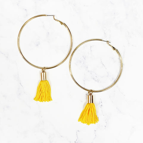 Mixed Tassel Hoops - Vegas Gold/Garnet