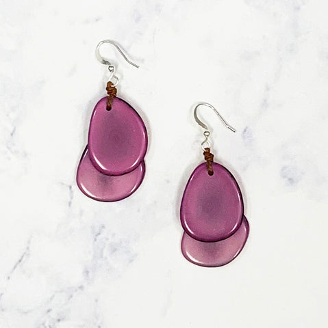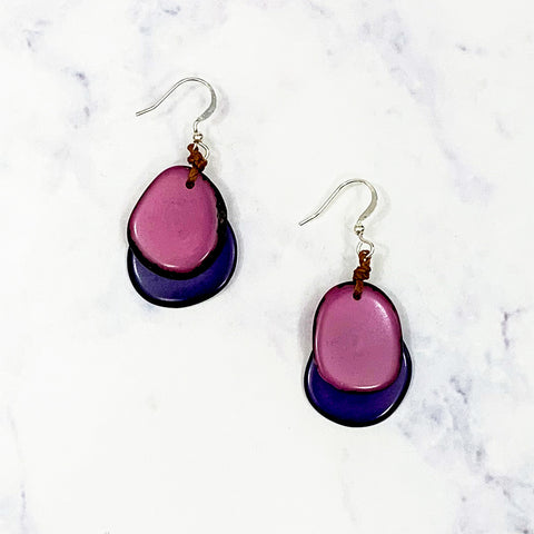 Layered Guitar Pic Tagua Earrings - Purple